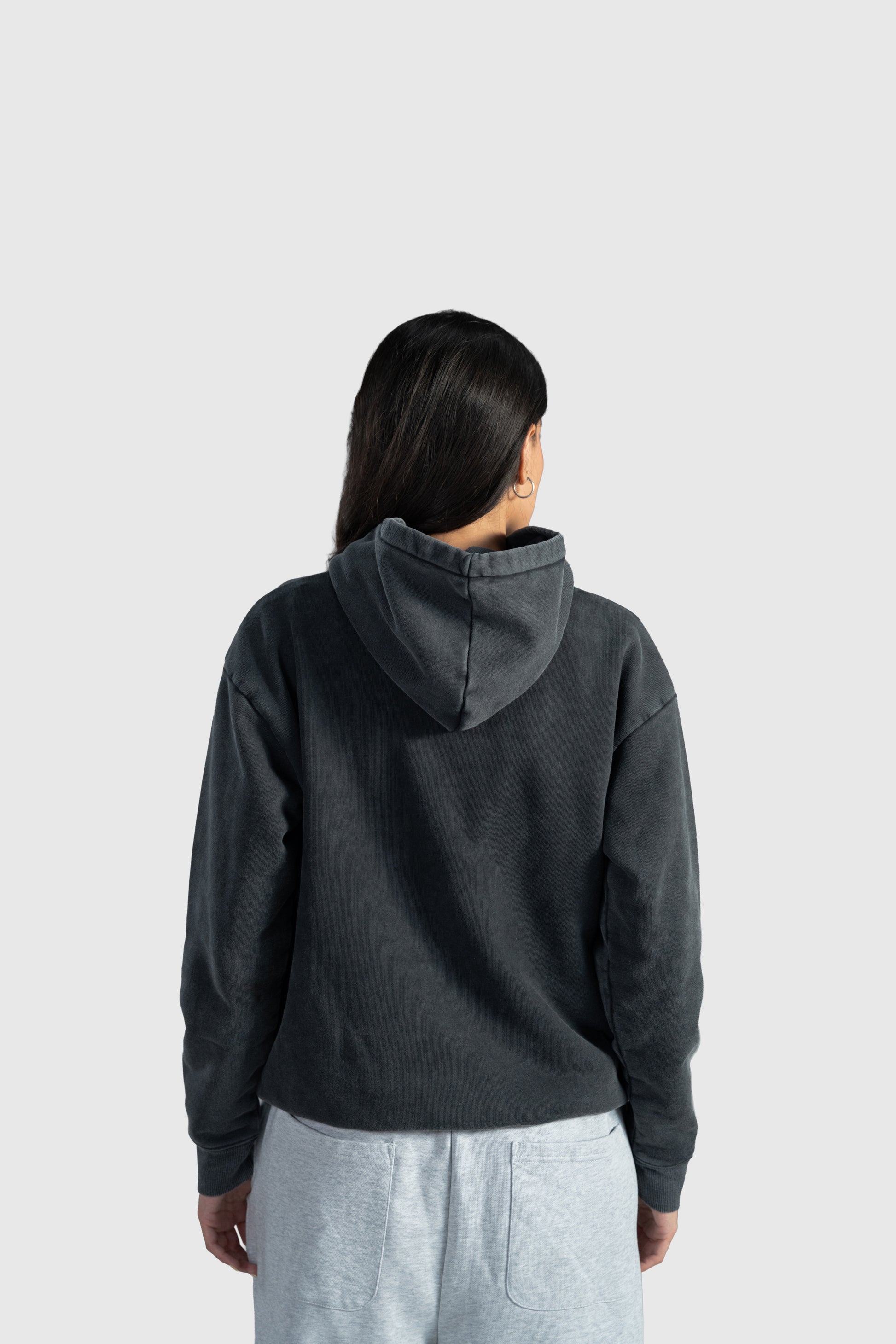 Designed in a slightly cropped, wide silhouette, this hoodie is crafted from heavyweight 500 GSM French terry for a structured yet comfortable feel. Made from 100% cotton, it features an external central pocket and ribbed cuffs and hem, creating a clean, modern everyday essential.