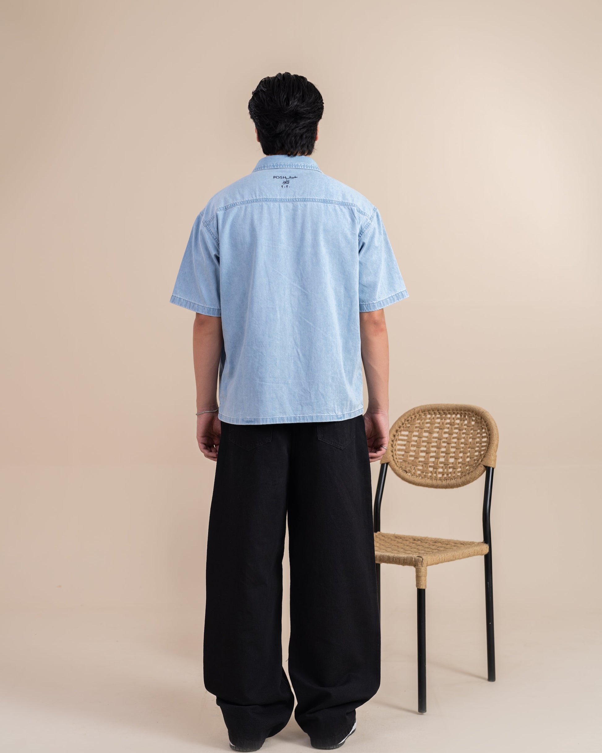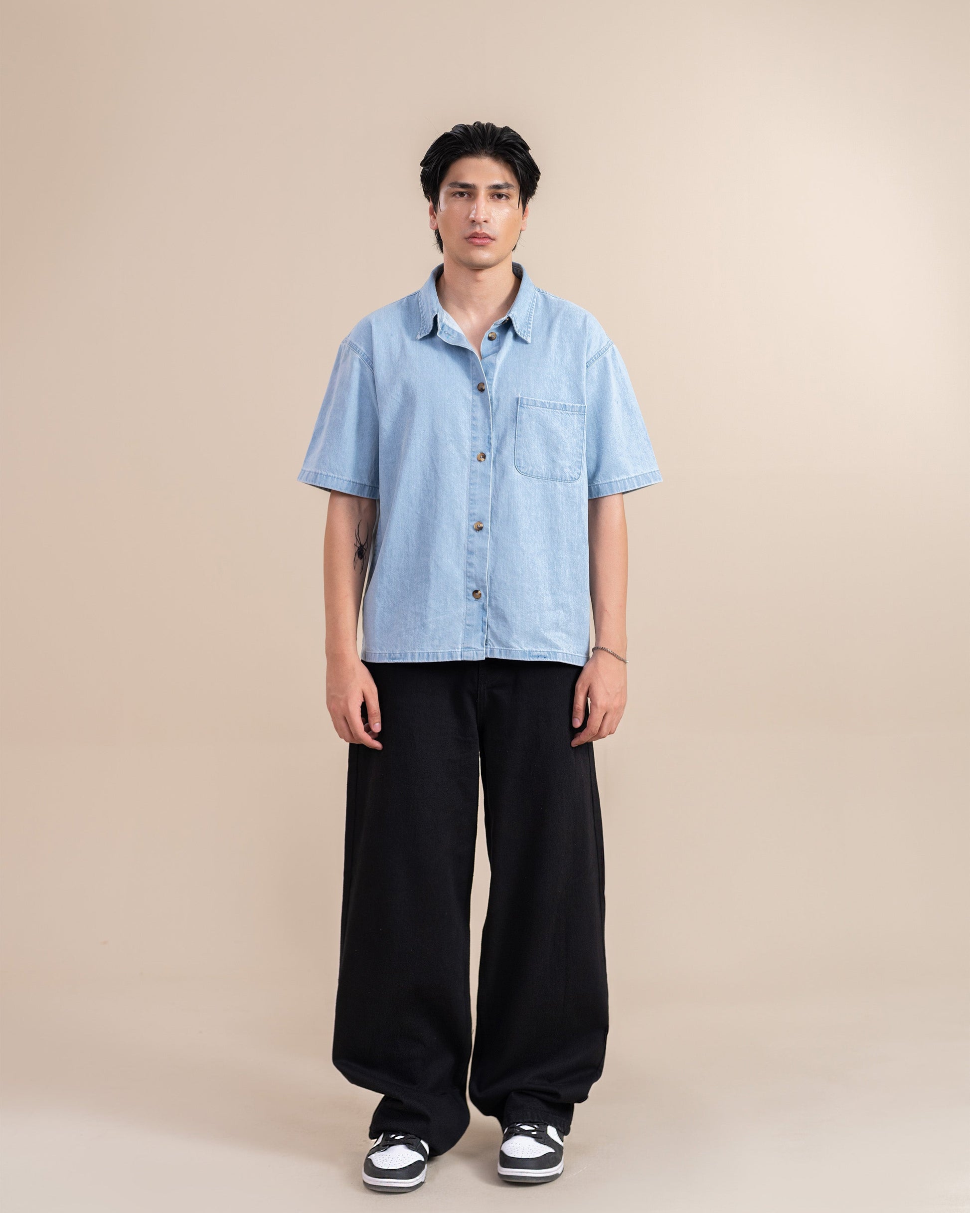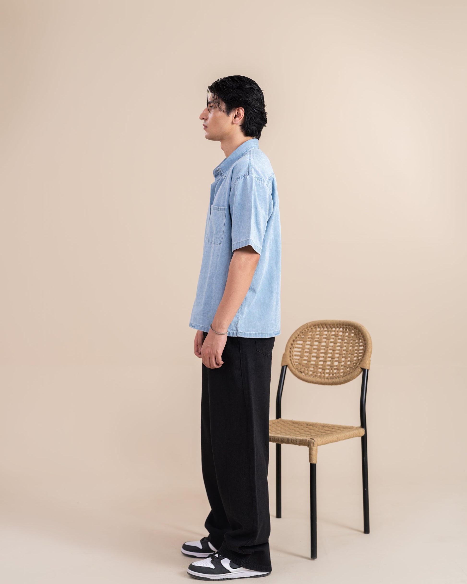 These jet-black high-rise jeans feature a classic wide-leg silhouette, a durable 100% genuine leather patch, and a timeless five-pocket design. Crafted from rigid denim, they offer an effortlessly stylish and structured fit.