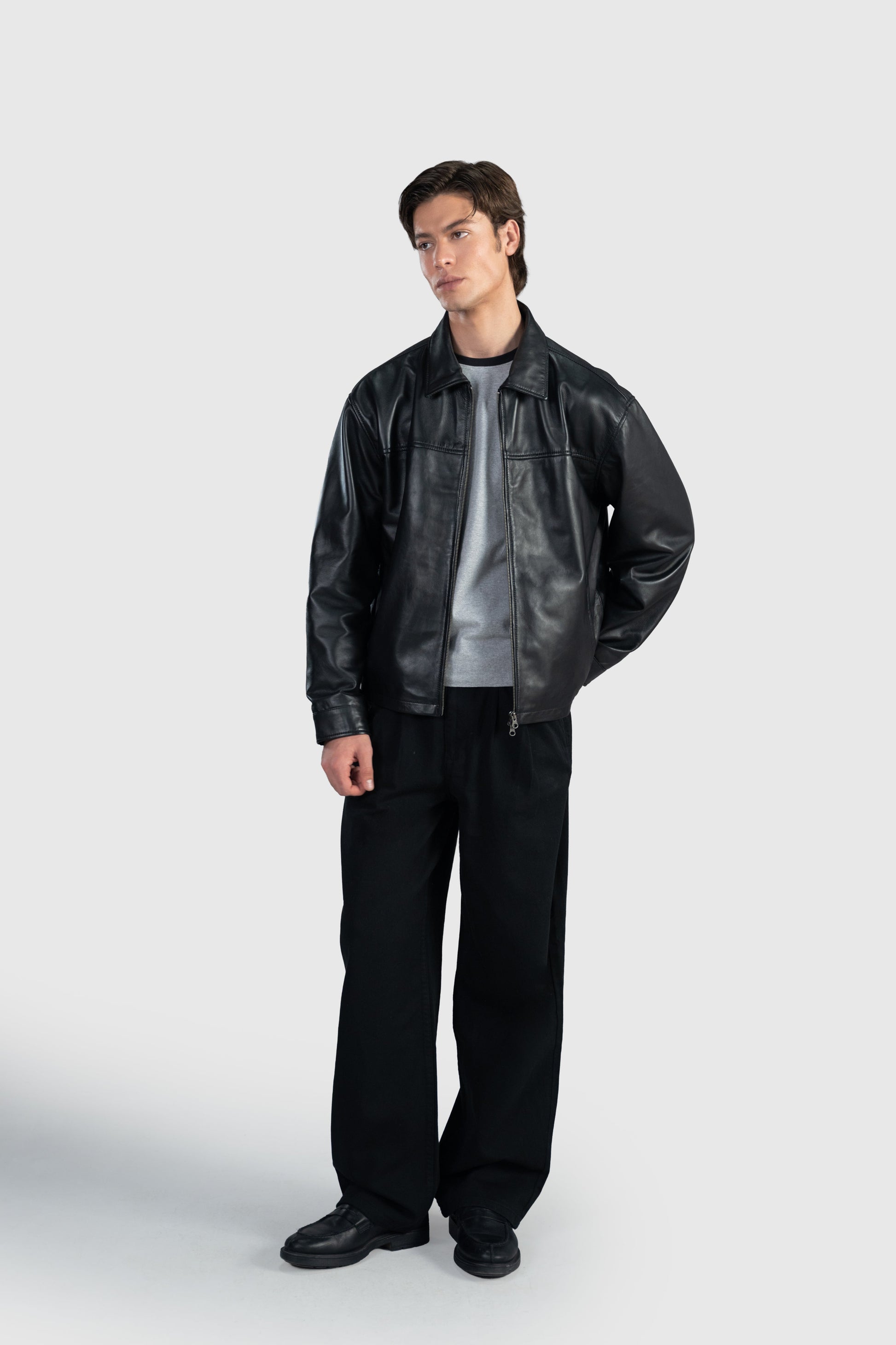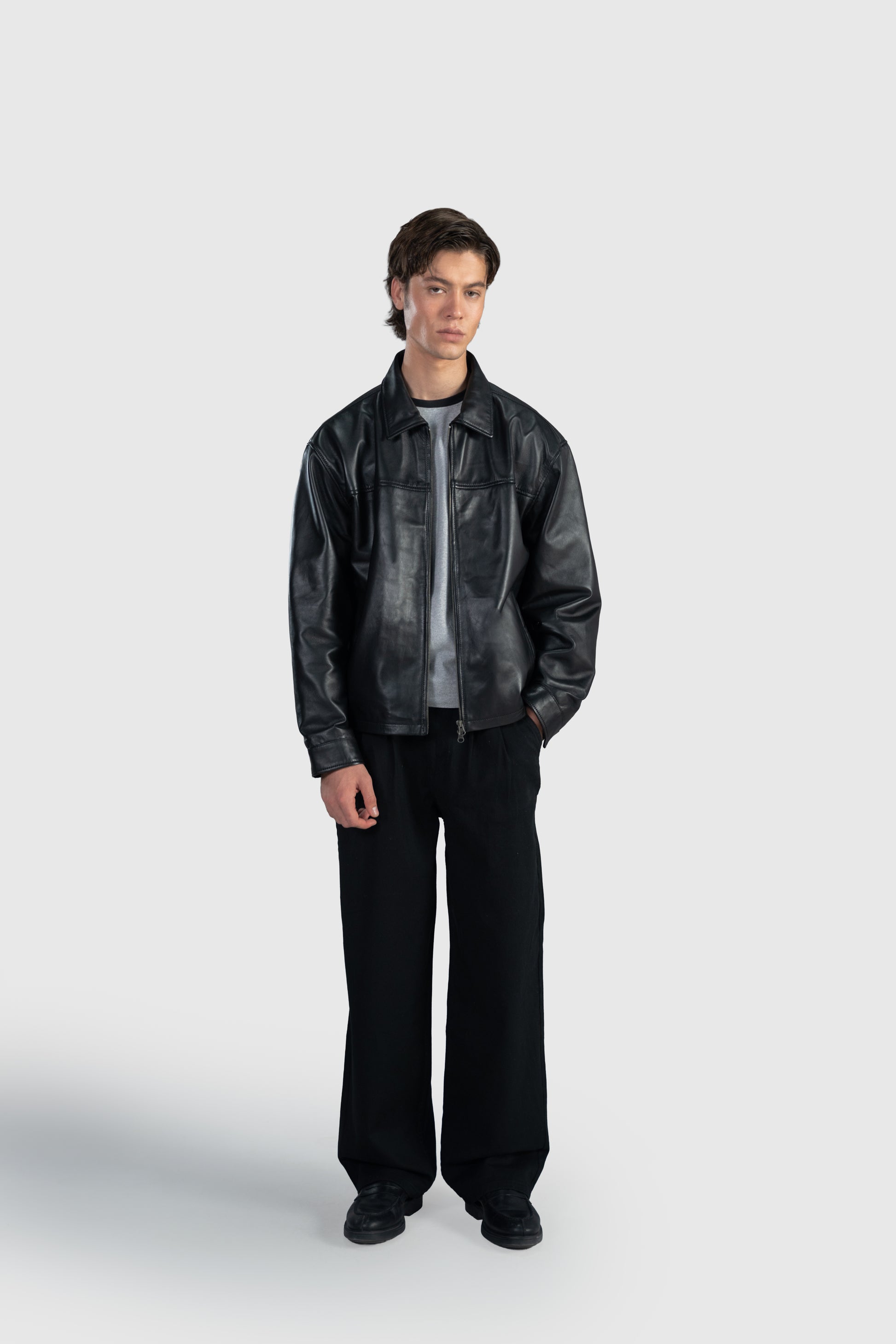 Crafted from A-grade sheep leather and cut in a slightly cropped, boxy silhouette, this jacket brings a clean, structured look with everyday comfort. The double YKK zipper adds versatility, while the silky inner lining makes it effortless to slide on and off. Designed as a limited release of only 100 pieces, it’s a timeless essential built to be rare, refined, and worn for years.