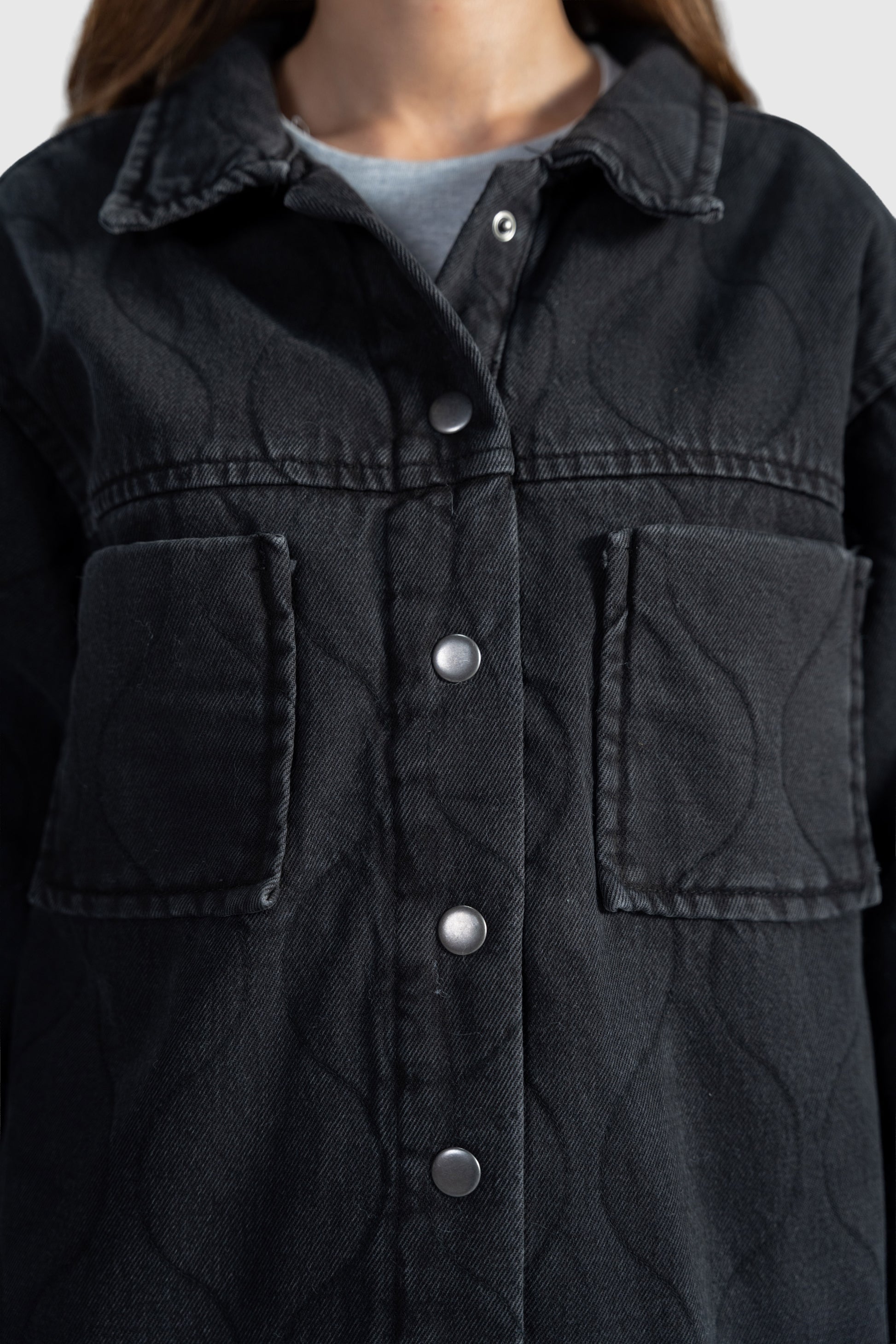 Designed in a boxy, relaxed silhouette, the Quilted Charcoal Denim Jacket is crafted from padded quilted denim. It offers a modern take on everyday outerwear.