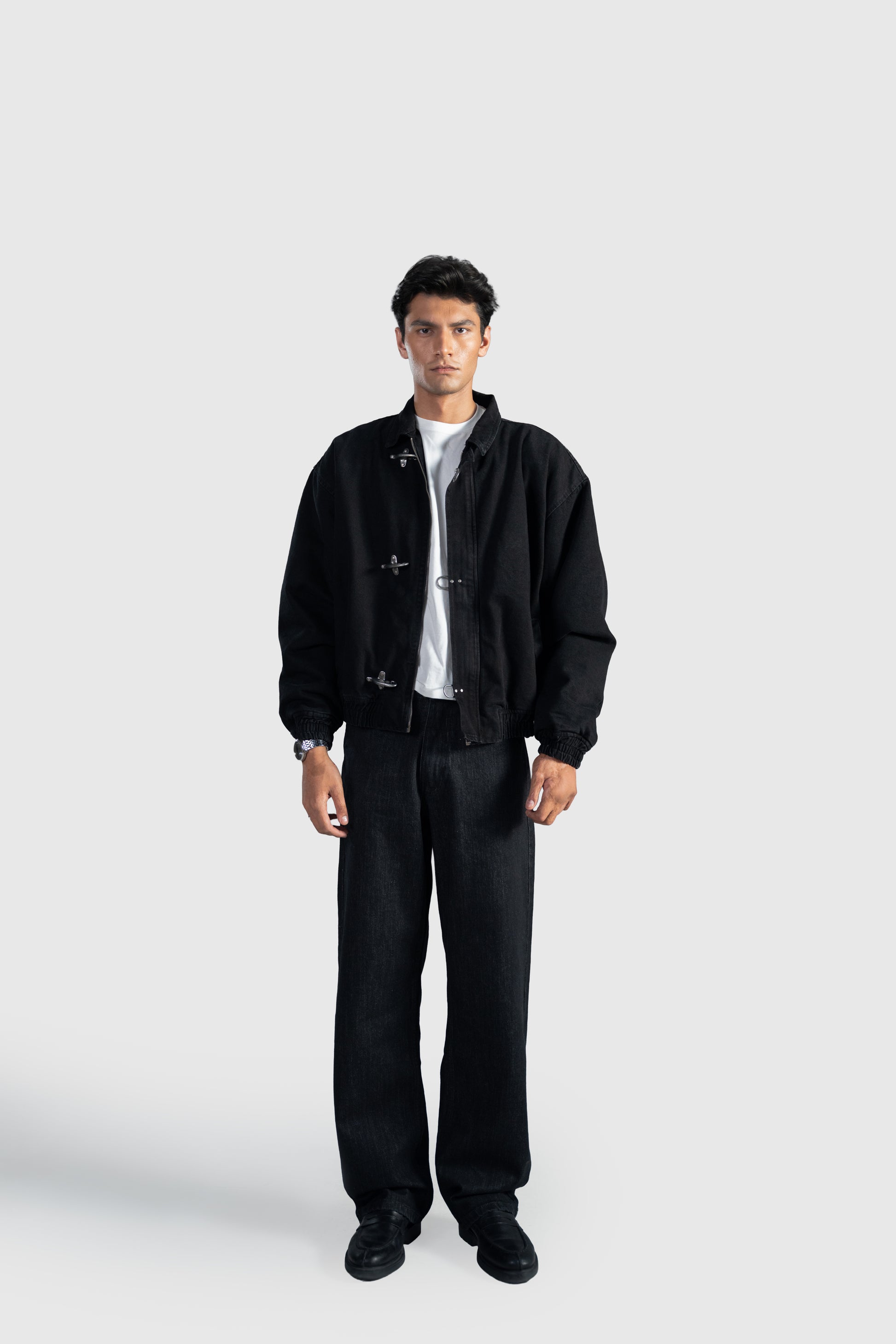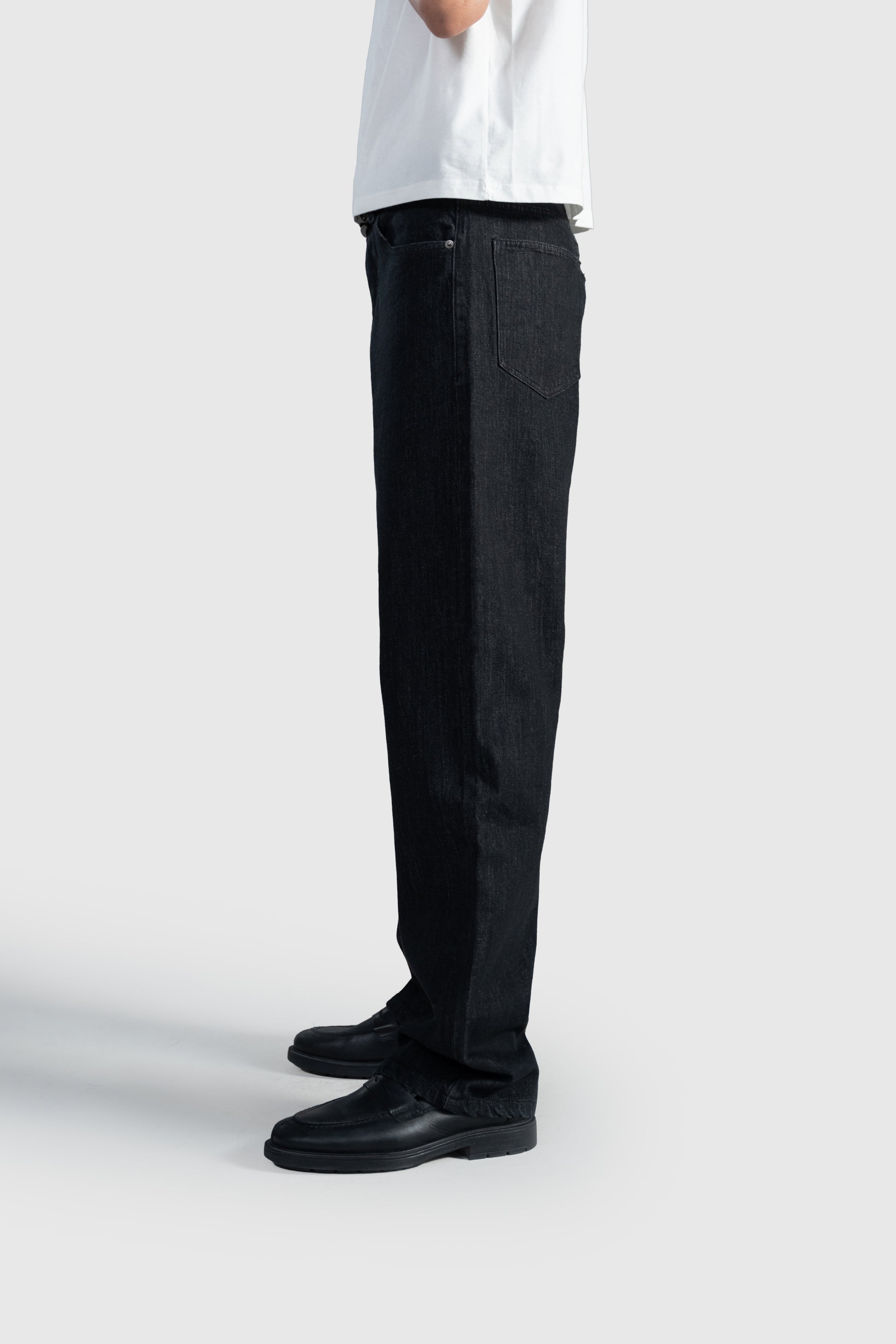These raw black mid-rise jeans feature a classic straight-leg silhouette, a durable 100% genuine leather patch, and a timeless five-pocket design. Crafted from rigid denim, they offer an effortlessly stylish and structured fit.